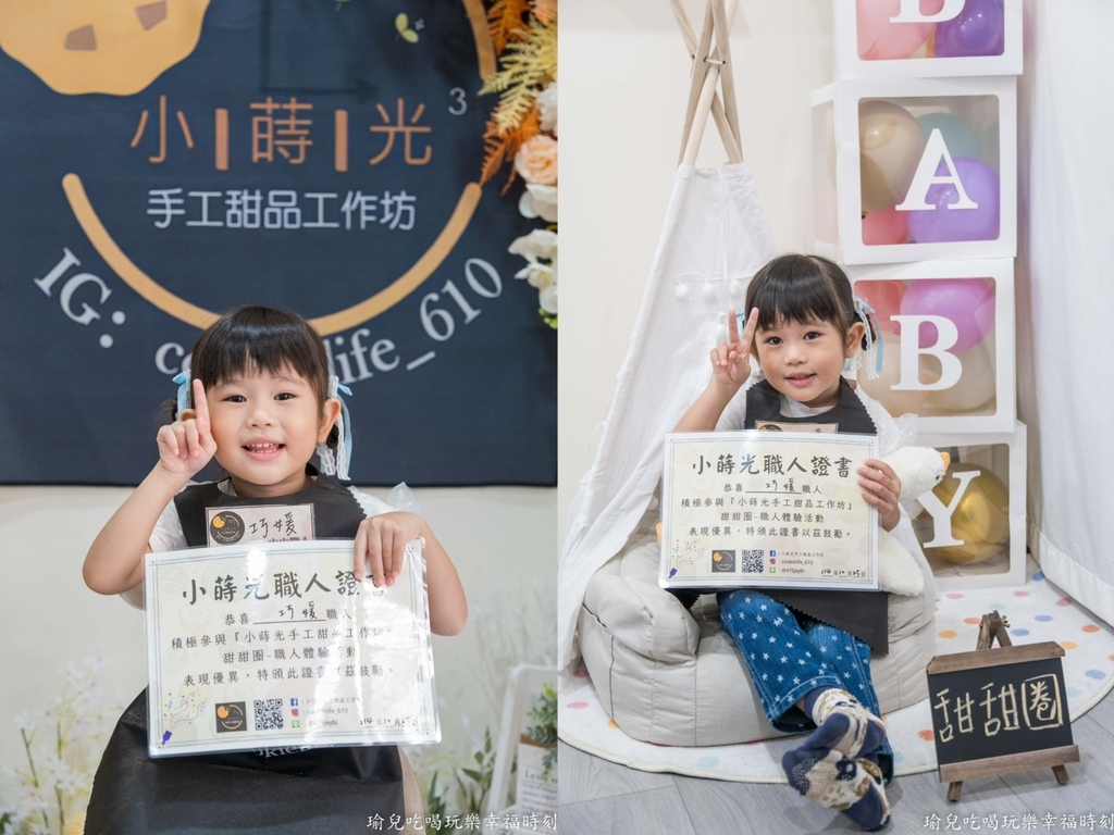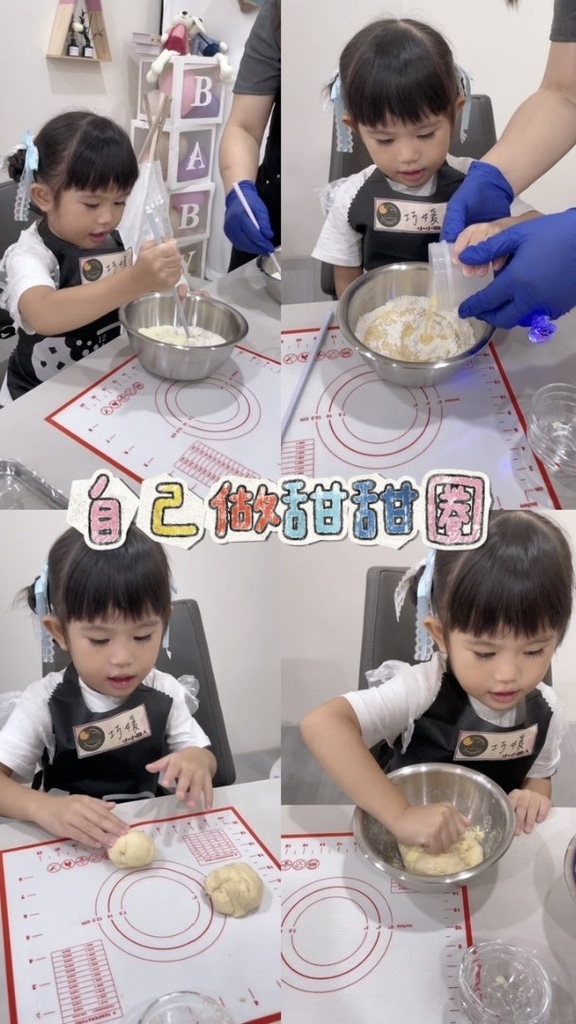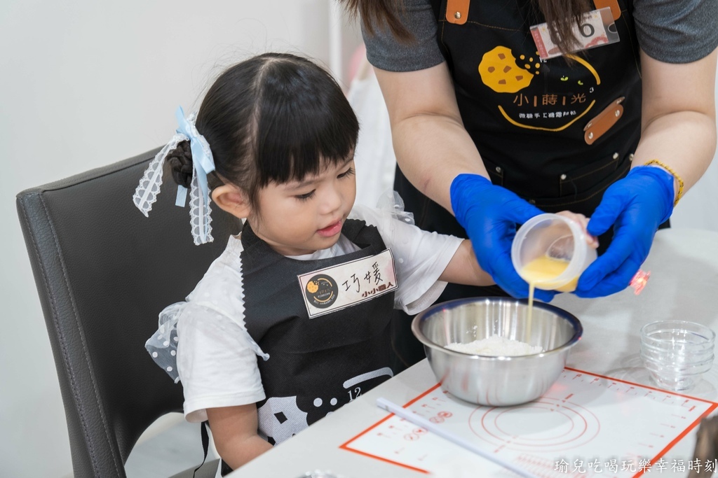 我會選擇小蒔光手工甜品工作坊的最大原因就是『小班制』!因為樂樂在面對比較多陌生人的環境時,總是需要一些時間觀察與適應,我希望她的第一次烘焙體驗是一個親切、沒有壓力,從『觀察』到『投入』自在發揮屬於她的小時光。
