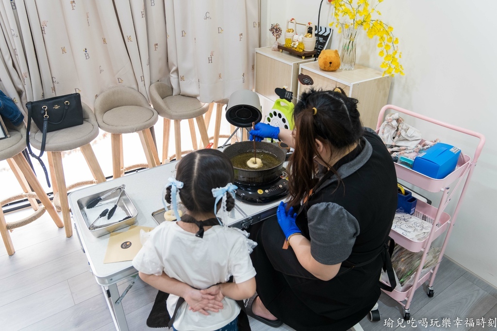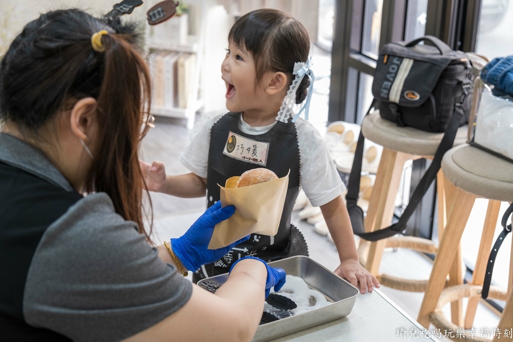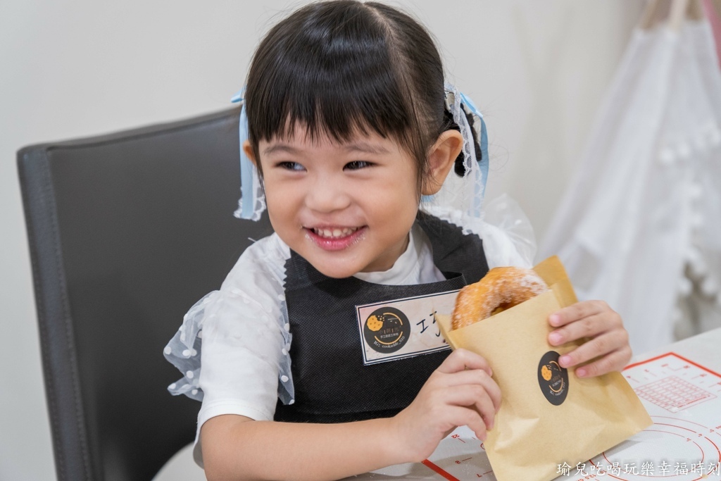 小蒔光有三種職人體驗課程『甜甜圈、銅鑼燒、糖霜餅乾』。會選擇甜甜圈課程,是因為樂樂有一天看了一部『自己做甜甜圈』的影片之後,突然跟我說:「媽媽,我也想要做甜甜圈。」那一刻我覺得,好呀!就讓她真的從揉麵糰開始,親手做出屬於自己的甜甜圈。我希望她體驗的不只是裝飾的樂趣,而是整個從原料變成成品出爐的那份驚喜,一個『從無到有』的過程,是我想送給她的烘焙初體驗。